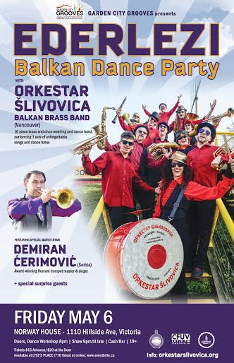 The annual Springtime Balkan-Roma Celebration returns to Victoria after a successful debut in 2013, once again featuring Orkestar Slivovica Balkan Brass Band, with special guest trumpet master and singer Demiran Cerimovic from Serbia.