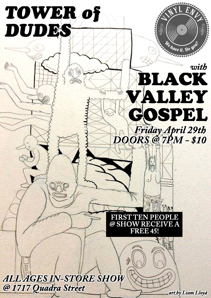 Better yet, the FIRST TEN PEOPLE in the door will RECEIVE A FREE Tower of Dudes / Black Valley Gospel split 7 inch!