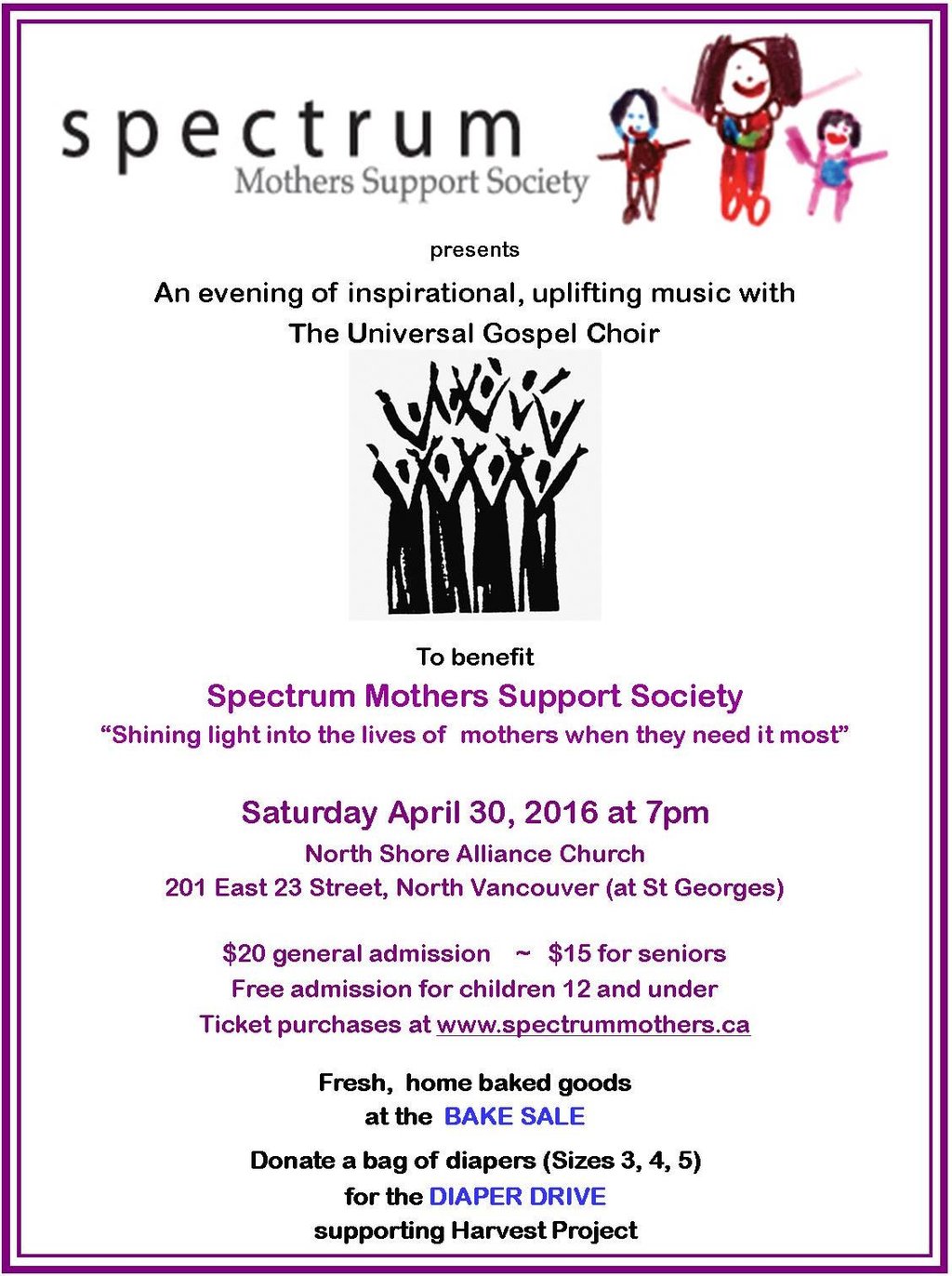 Benefit Concert for Spectrum Mother's Society: Universal Gospel Choir @ North Shore Alliance Church Apr 30 2016 - Feb 4th @ North Shore Alliance Church