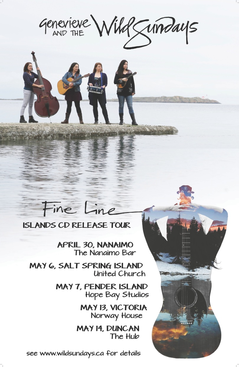 Genevieve and the Wild Sundays are thrilled to be releasing their new full length studio album "Fine Line", produced by Wynn Gogol in Victoria, BC. They are celebrating with a concert at the Norway House in Victoria on May 13th. Other shows in the tour include Nanaimo- April 30, Salt Spring Island- May 6, Pender Island- May 7, and Duncan- May 14th.
