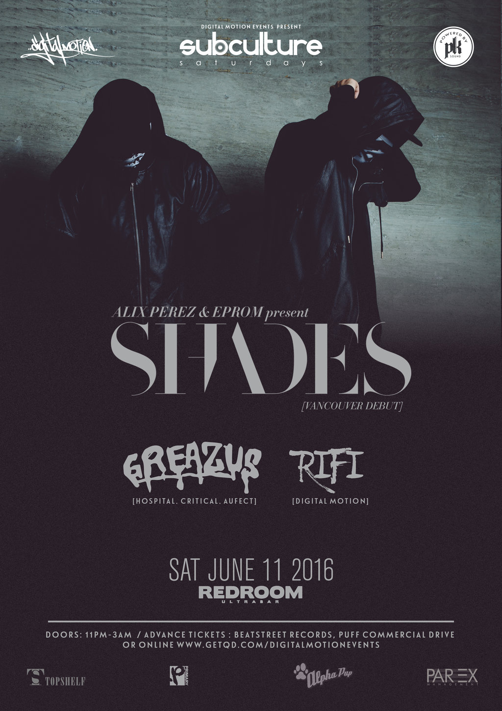 Alix Perez & EPROM bring their bass-laden future hip hop project SHADES to #SUBcultureSaturdays for what will be a unforgettable night!