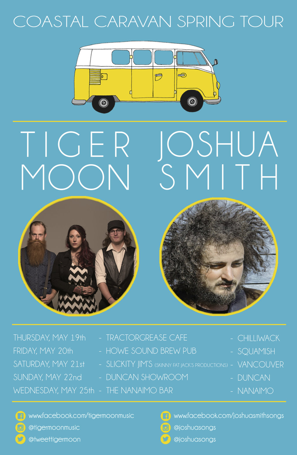Tiger Moon & Joshua Smith, two of BC’s most sought-after folk acts, are performing at Slickety Jim's on May 21st at 8pm. The bands have combined forces to bring a unique show Vancouver and the coast.