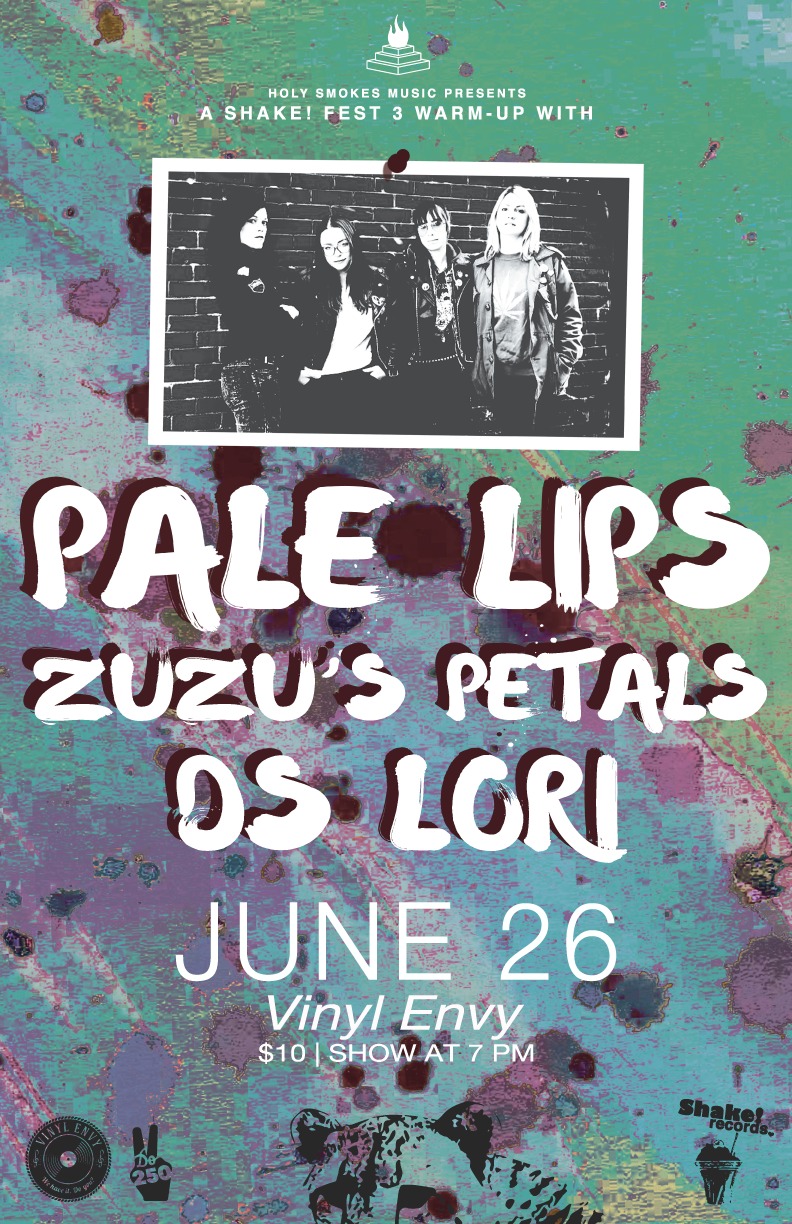 The second warm-up show for Shake! Fest 3 is happening on Sunday, June 26th at Vinyl Envy with Pale Lips, Zuzu's Petals, and DS Lori!!! * early show / all-ages *
