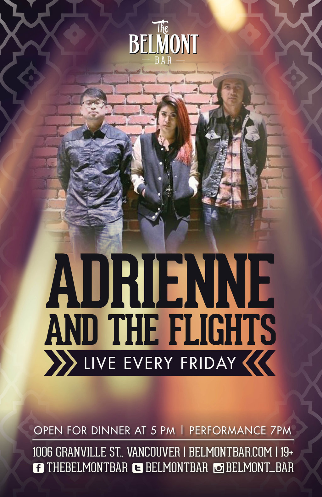 Adrienne and the Flights are an upcoming, Vancouver based trio, made up of three musicians whose different backgrounds bring together a unique and exciting mix of music. A wide variety of influences are highly evident in each original piece, sharing distinct melodies and tones. Being acoustically driven, Adrienne and the Flights deliver diverse sounds from a fusion of indie, R&B, jazz and soul.
