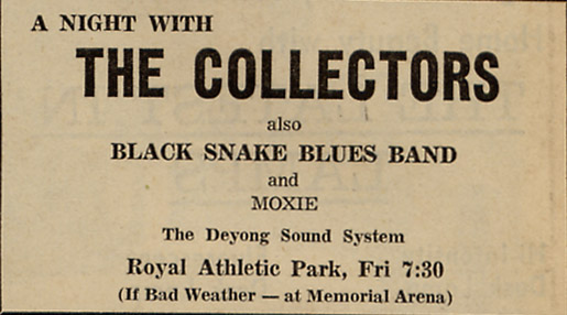 A Night with The Collectors: The Collectors, Black Snake, Moxie @ Royal Athletic Park Jul 25 1969 - Feb 17th @ Royal Athletic Park