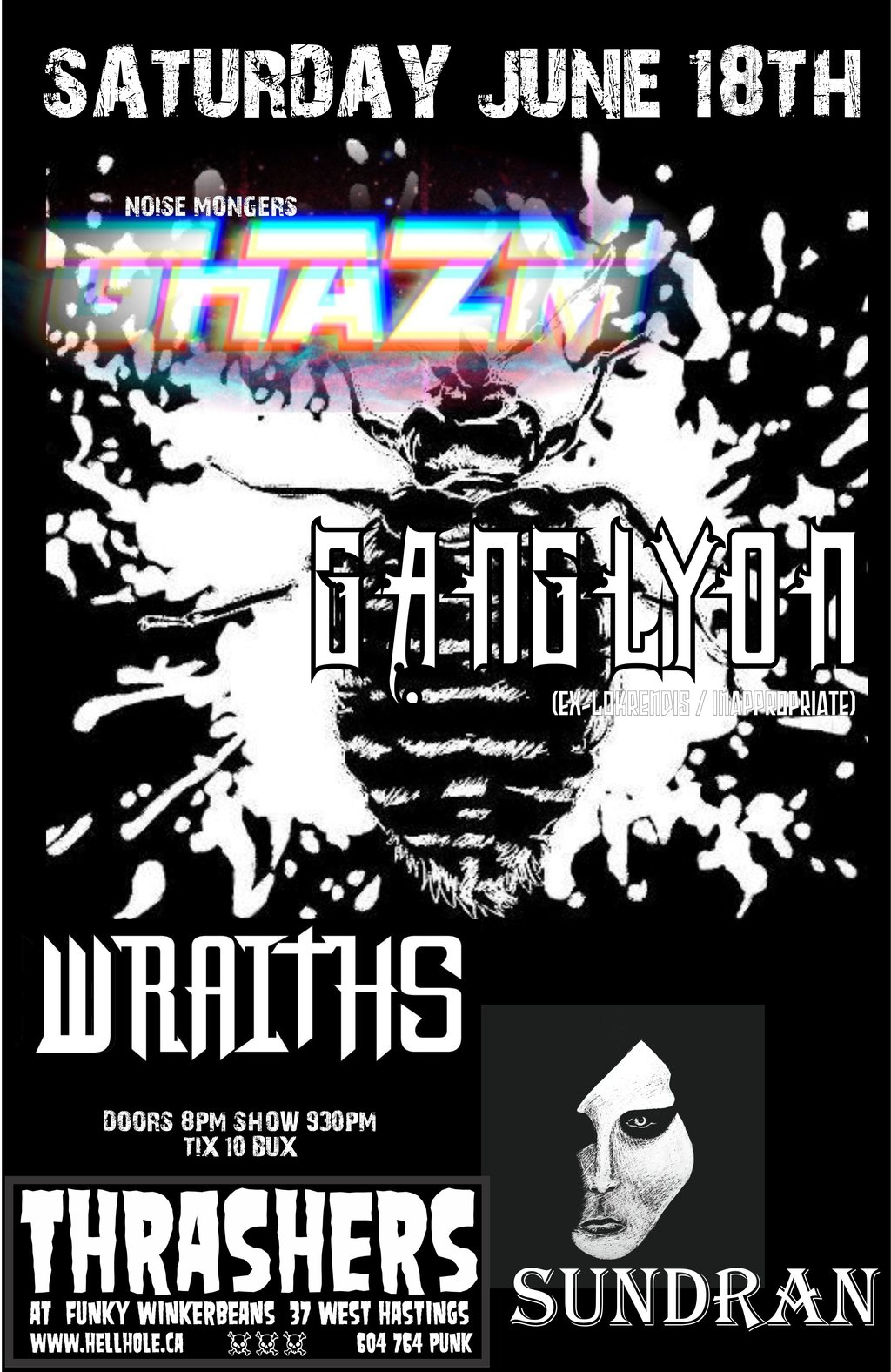 SAT JUNE 18 * GHAZM * GANGLYON * WRAITHS * SUNDRAN *