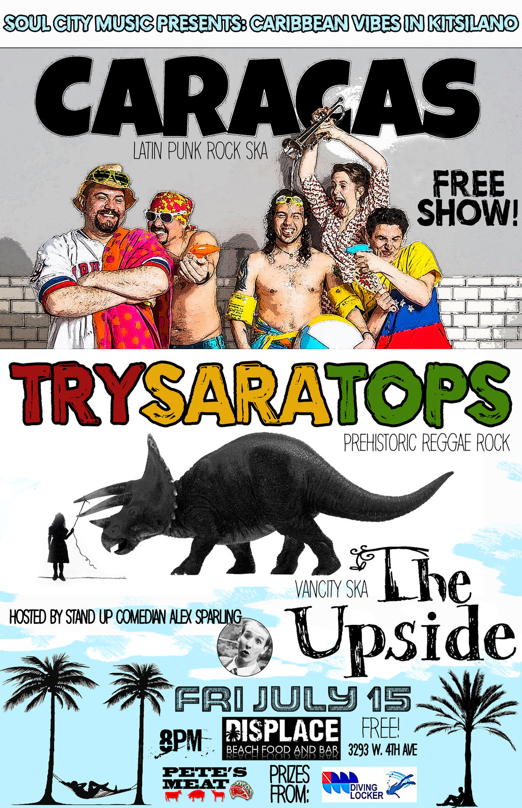 Come on down to Displace Hashery for a rad night of Caribbean vibes. With live music from Caracas, Trysaratops and The Upside, this night is sure to put a pep in your step and keep you grooving on the dance floor. Hosted by stand up comedian Alex Sparling.