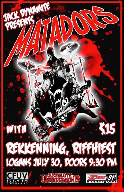 The Matadors one of the most electrifying psychobilly band live in the world who have a solid reputation to give you one of the hottest show in town. Opening is Vancouvers top female fronted punk / metal band The Rekkening and Victorias own Riffhiest (Ex Alcoholic White Trash)