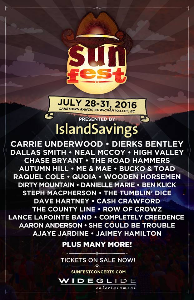 The original vision of Sunfest was to bring headline acts to the Cowichan Valley and provide opportunities for local artists to share the spotlight. Starting out as a one day rock concert at Providence Farm 16 years ago, Sunfest now embraces Country Music as the roots that have helped grow the one day concert into the ultimate music festival experience. Our gracious hosts at the Cowichan Exhibition provided the ideal concert bowl where local and international artists graced the Sunfest stage surrounded by the stunning backdrop of scenic Mount Prevost, however in 2016 the festival is moving to a permanent home. The new property at Laketown Ranch, located in Cowichan Lake boasts a 172 acre event site and the ability for our team to build the ultimate festival experience for years to come.