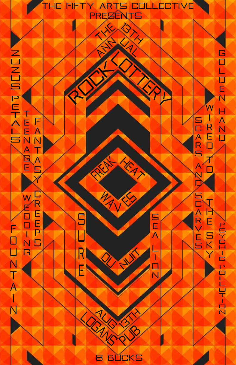 the fifty fifty arts collective's 13th annual ROCK LOTTERY!: Freak Heat Waves, Fountain, Zuzu's Petals, Golden Hand, Psychic Pollution, Wired to the Sky, Scars and Scarves, SURE, Chance Lovett and the Broken Hearted, Sealion, Du Nuit, Fantasy Creeps