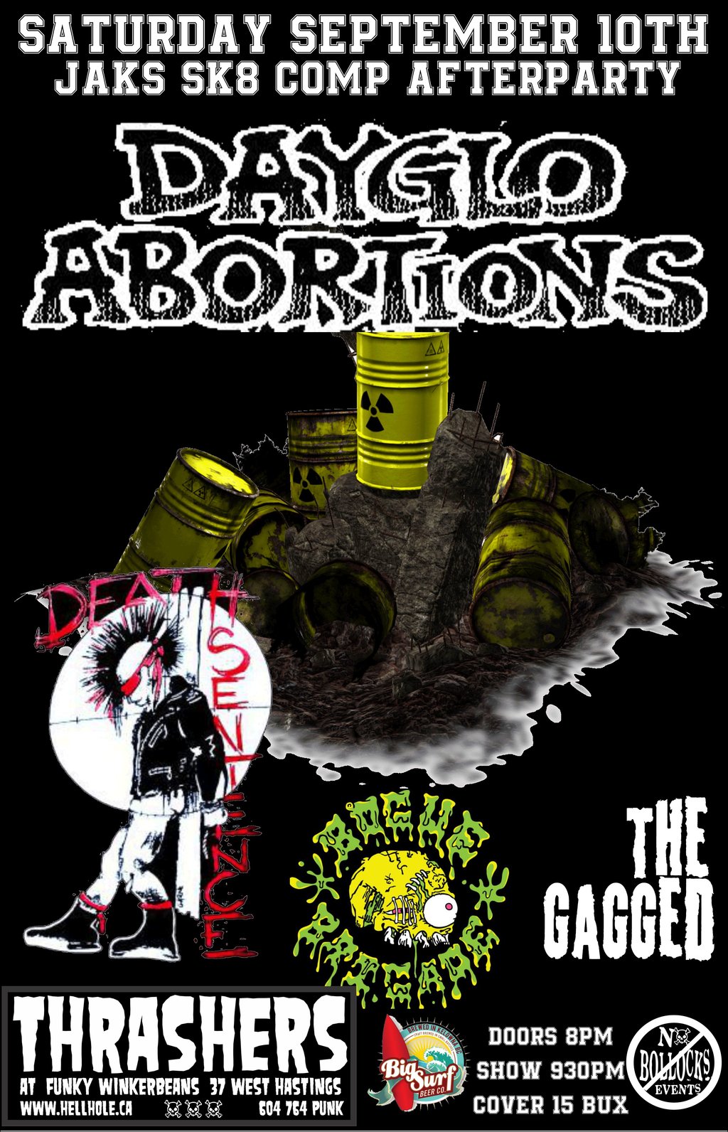 SAT SEPT 10 * JAKS SK8 COMP AFTER PARTY WITH * DAYGLO ABORTIONS * DEATH SENTENCE * BOGUE BRIGADE * THE GAGGED *