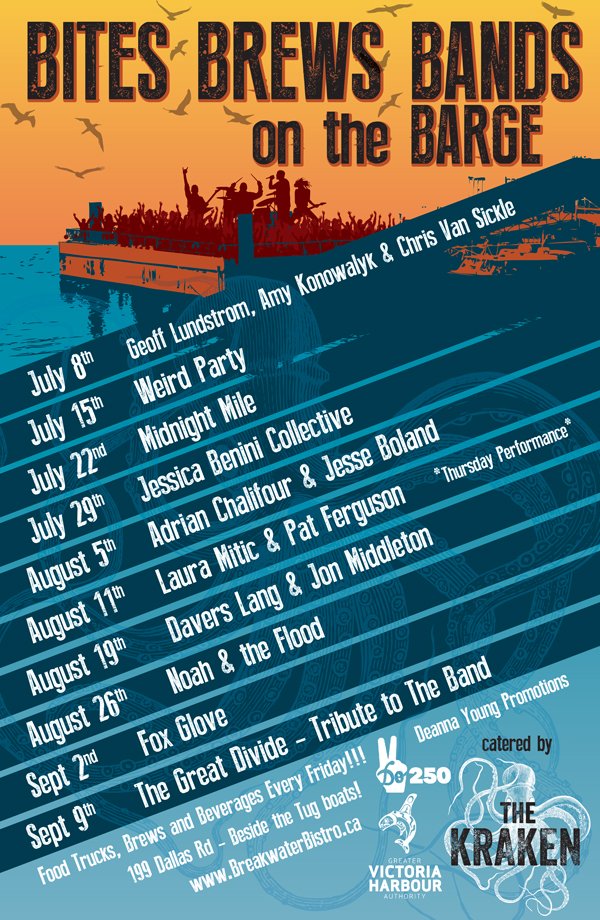 BITES-BREWS-BANDS ON THE BARGE: Adrian Chalifour, Jesse Boland  @ Ogden Point Aug 5 2016 - Feb 3rd @ Ogden Point