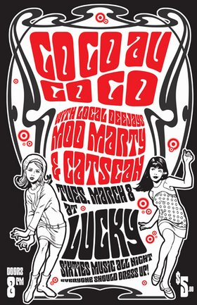 DeeJay MOD MARTY from "The Mod Club" and DeeJay CATSCAN from "Hang The DJ" present "GO-GO au GO-GO", a Full Night of Sixties Party Music and Fun. POP, R&B, BEAT and ROCK & ROLL are the order of the day! Dress up as crazy as you like (y'know, in that Laugh-In/Austin Powers style).