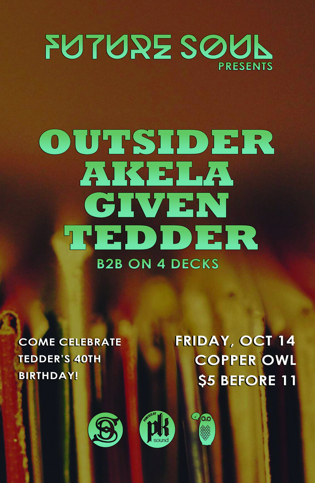 FUTURE SOUL w/: Outsider, AKELA , Given, Tedder @ Copper Owl Oct 14 2016 - Jan 15th @ Copper Owl