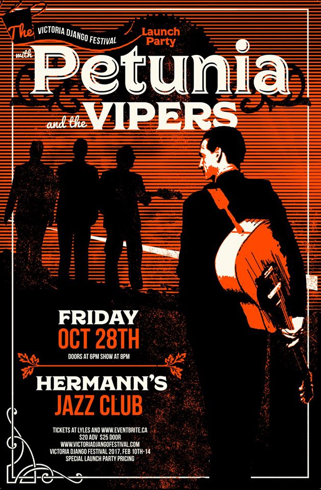 Celebrate the Launch of The 2017 Victoria Django Festival with 2016 fan favorites Petunia & The Vipers.