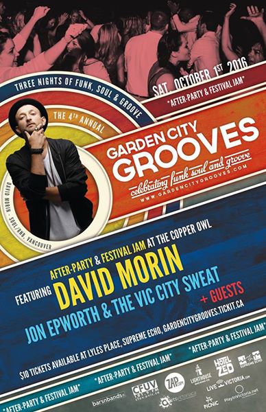 Garden City Grooves Festival AfterParty & Jam: David Morin, Jon Epworth and the VIc City Sweat, + special guests @ Copper Owl Oct 1 2016 - Feb 3rd @ Copper Owl