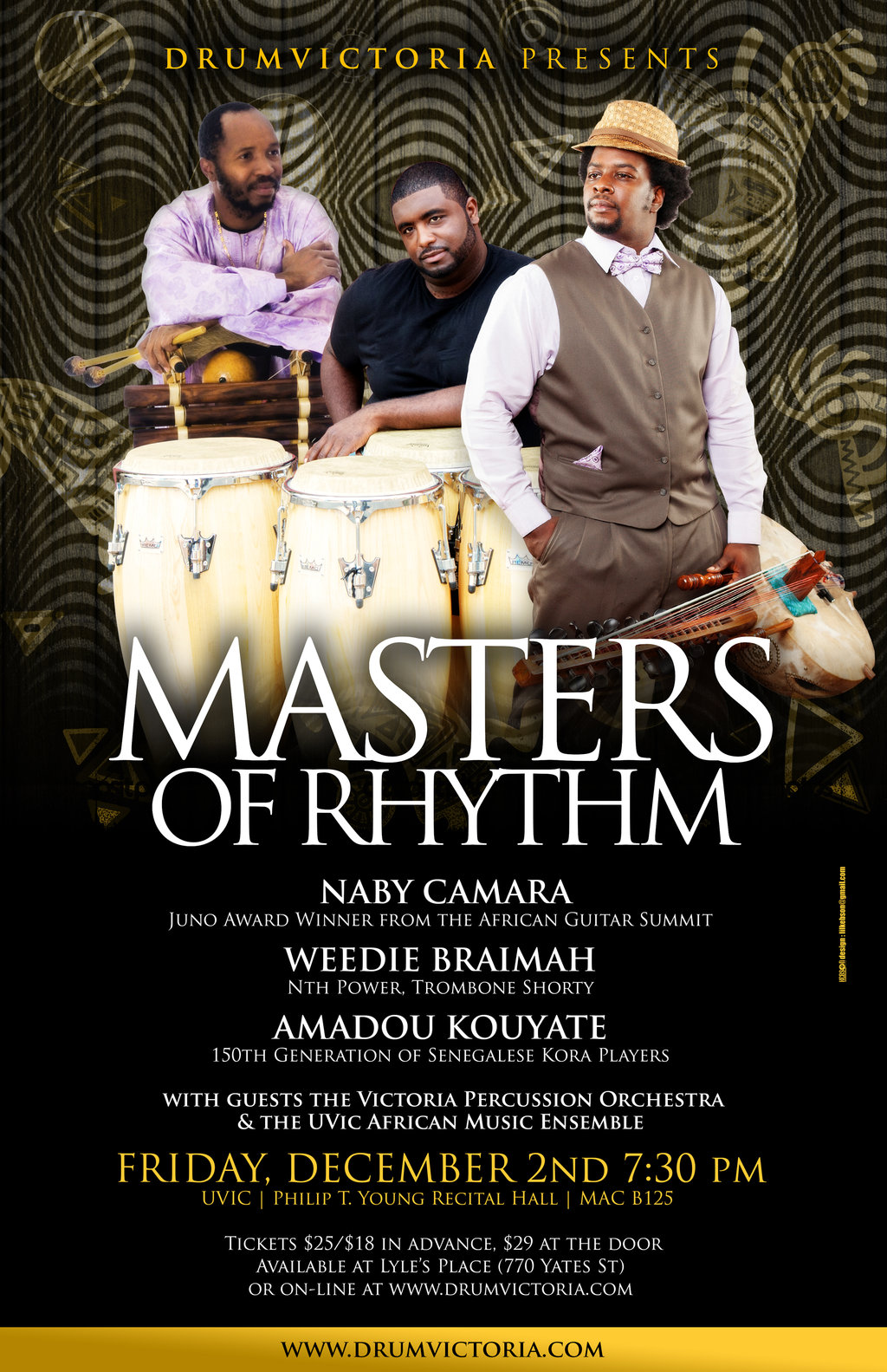 An unforgettable evening with three of West Africa's finest musicians... Two-time Juno Award winner Naby Camara (balafon & percussion), Amadou Kouyate (kora - African harp & Percussion), Weedie Braimah (djembe & percussion).
