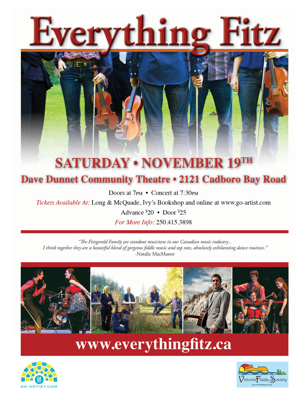 Everything Fitz presents an eclectic program, which blends traditional jigs and reels, bluegrass, jazz standards, Celtic and show-stopping Ottawa-Valley step dancing. Everything Fitz is an energetic, virtuosic, tradition-celebrating outfit, not to mention, one that’s not soon forgotten when seen fiddling and step dancing - at the same time!