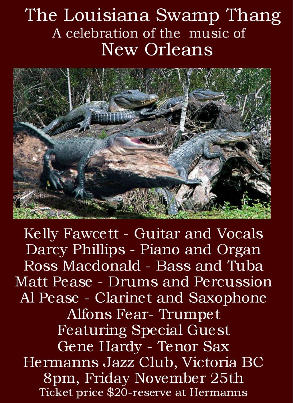 A Celebration of New Orleans Funk and Soul: Kelly Fawcett and the Swamp Things, Gene Hardy @ Hermann's Jazz Club Nov 25 2016 - Feb 22nd @ Hermann's Jazz Club