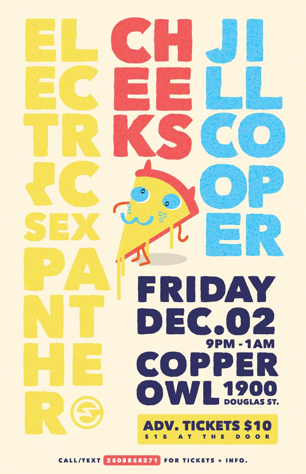 Come join us for another awesome night at the Copper Owl! Jill Cooper, Cheeks, and Electric Sex Panther will be taking the stage for a night you don't want to miss. Tickets are $10 in advance or $15 at the door - call/text 250-885-8271 or contact one of us on Facebook to get your ticket in advance!