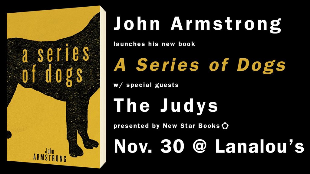 This is the third book for John Armstrong, musician and band leader for The Modernettes. A SERIES OF DOGS is about to jump the fence and knock you on your ass and show you such a good time you won't be sure if you're laughing or crying or just covered in dog slobber.