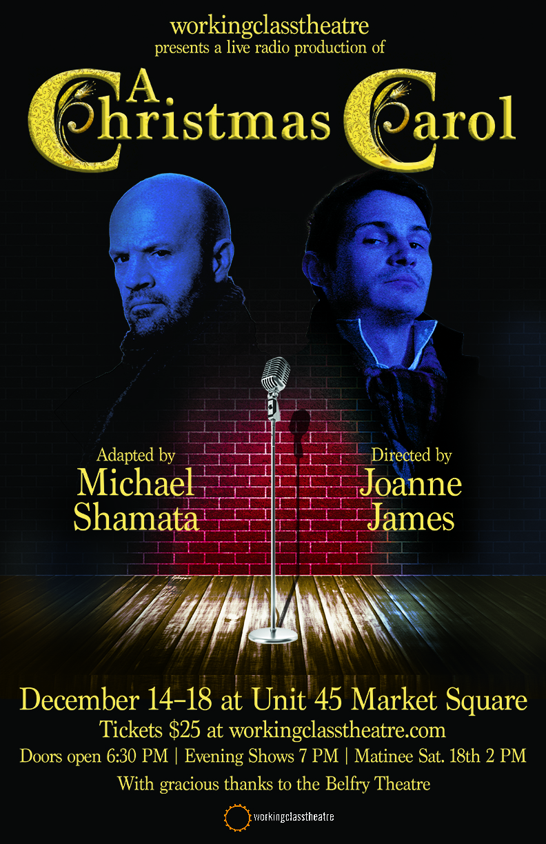 workingclasstheatre is back with Radio: Scrooge, a live broadcast of A Christmas Carol. We’re excited to bring this timeless holiday classic to life with a unique spin that’s sure to delight audience members of all ages. Directed by Artistic Associate Joanne James, and featuring staple company members Ross Crockett as Scrooge and the return to the workingclasstheatre showbill, Artistic Director Tristan Bacon takes to the stage as Jacob Marley among others. Radio: Scrooge is the first in workingclasstheatre’s 16/17 season, with a new adaptation of Frankenstein due for May. workingclasstheatre wants to thanks the Belfry Theatre for its generous support on this production.