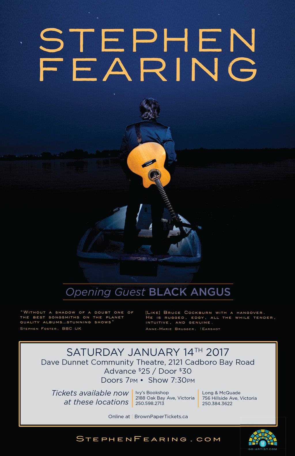 Multi JUNO Award-winner Stephen Fearing is celebrating his recent move to Victoria by launching his ninth studio record, Every Soul’s a Sailor, at a special album release concert in Oak Bay on Saturday, January 14th, 2017 and with an exclusive songwriting workshop for Victoria musicians on Saturday, January 7th.