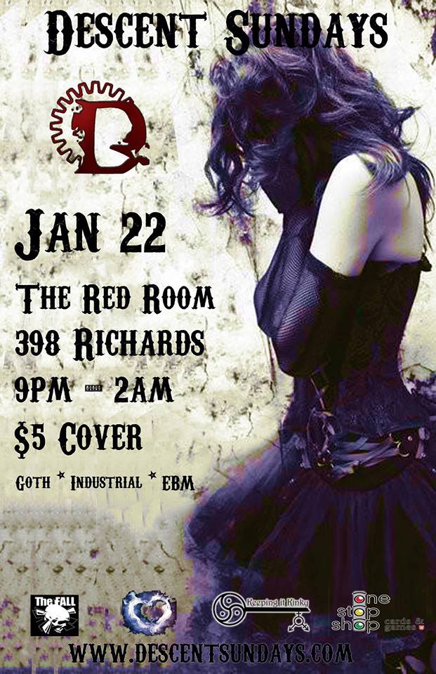 The solstice is behind us and the sunlight is slowly bleeding back into the daytime, but it will still be long dark come 9PM on Sunday evening January 22nd. Join your fellow children of the night as the Descent crew brings your our first event of 2017, an evening of all the latest and classic Gothic, EBM, 80’s and industrial music.