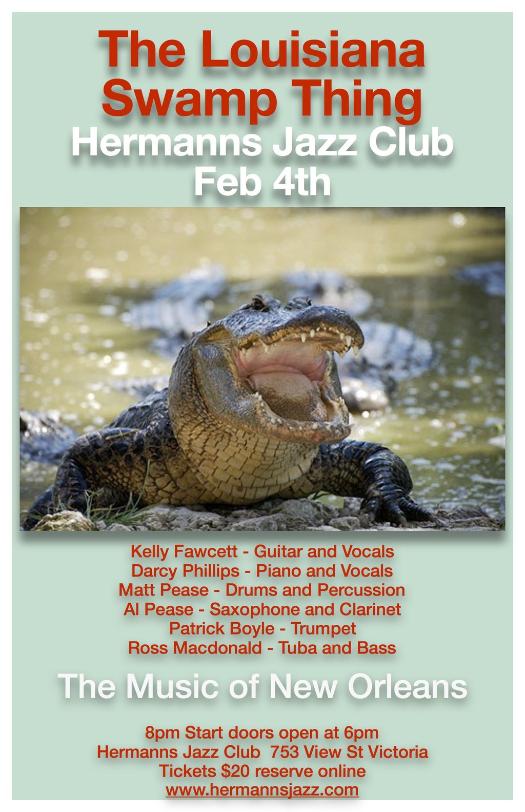 Swamp Thing: Kelly Fawcett, Al Pease, Ross Macdonald, Matt Pease, Patrick Boyle, Darcy Phillips, Nick La Riviere @ Hermann's Jazz Club Feb 4 2017 - Feb 7th @ Hermann's Jazz Club