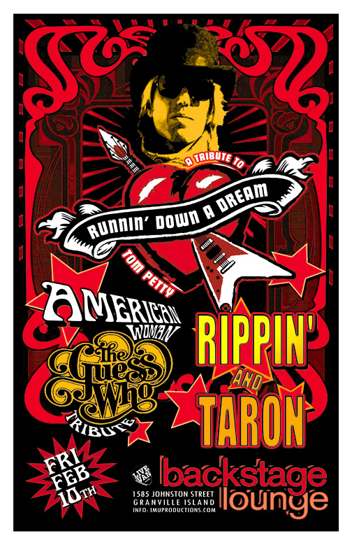 . Friday, February 10th IMU presents RUNNIN' DOWN A DREAM Tom Petty Tribute w/ AMERICAN WOMAN A Tribute to the Guess Who & RIPPIN' AND TARON @ The Backstage Lounge, 1585 Johnston Street. Doors 9pm / Show 9:30pm / $10 cover