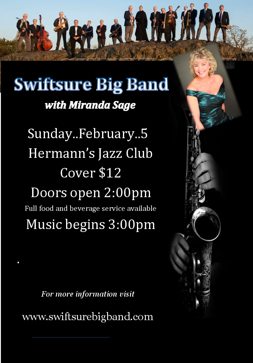 With 17 instrumentalists and internationally renowned vocalist, Miranda Sage, the Swiftsure Big Band has been providing dance music for over 20 years.