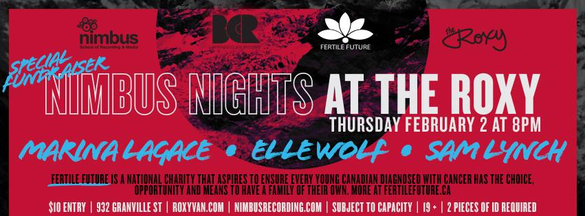 Special Fundraiser: Fertile Future: Nimbus Nights: Marina Lagace, Elle Wolf, Sam Lynch @ The Roxy Feb 2 2017 - Jan 27th @ The Roxy