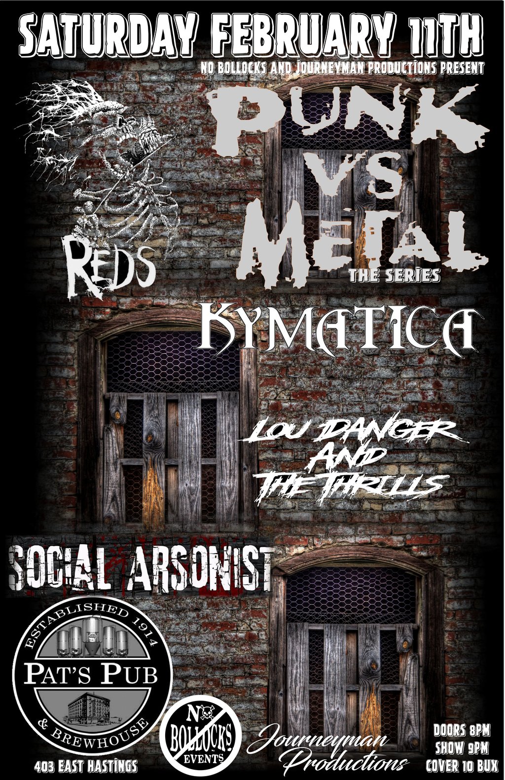 SAT FEB 11 * NO BOLLOCKS & JOURNEYMAN PRODUCTIONS PRESENT * PUNK VS METAL ~ THE SERIES WITH * REDS * KYMATICA * LOU DANGER AND THE THRILLS * SOCIAL ARSONIST *