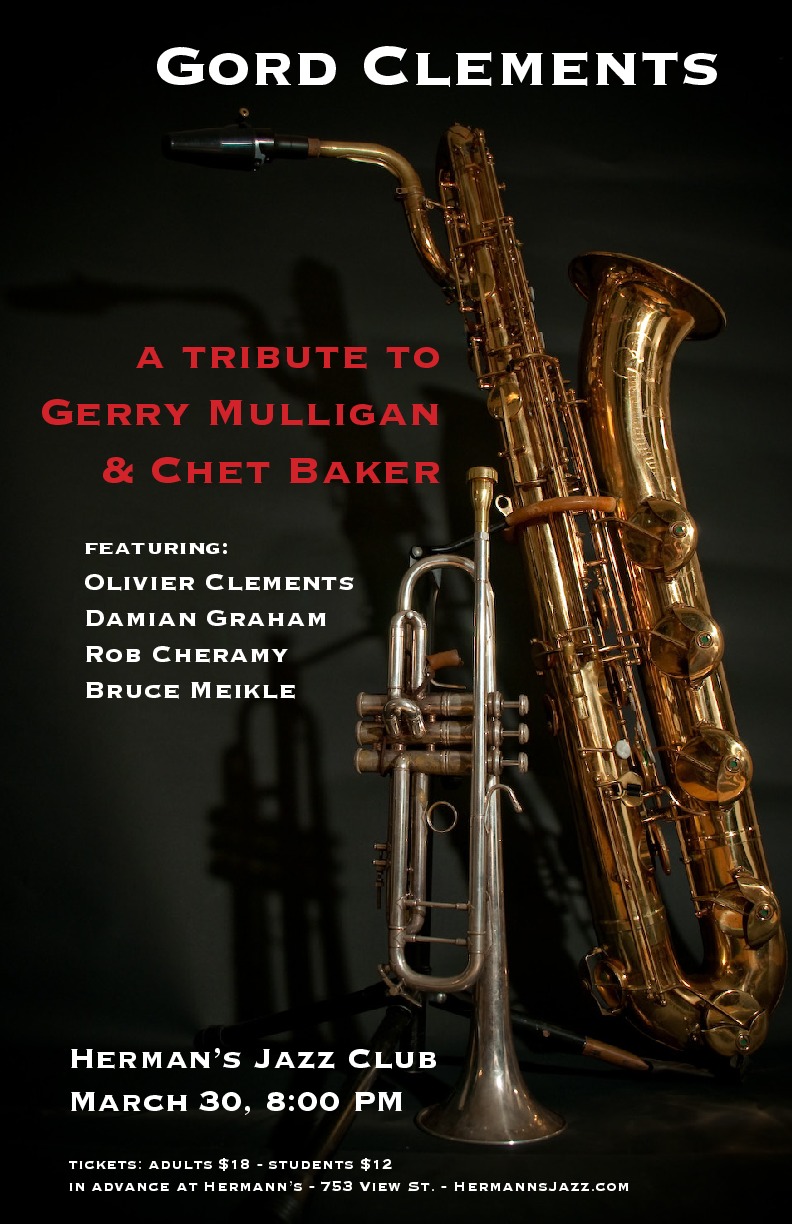 A tribute to Gerry Mulligan & Chet Baker: Gord Clements Quintet @ Hermann's Jazz Club Mar 30 2017 - Dec 29th @ Hermann's Jazz Club