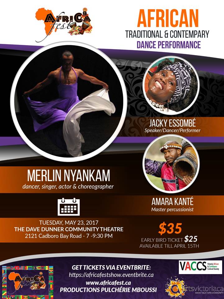 African Traditional & Contemporary Dance Performance: Merlin Nyankam Cameroonian from Paris, Salif Sanou, Amara Kanté, Fodé Soumah  @ Dave Dunnet Theatre  May 23 2017 - Nov 25th @ Dave Dunnet Theatre