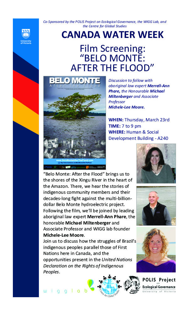 “Belo Monte: After the Flood”—A Canada Water Week Film Screening and Panel Discussion: Merrell-Ann Phare, Micheal Miltenberger, Michele-Lee Moore @ UVic, Human and Social Development Building, room A240 Mar 23 2017 - Mar 17th @ UVic, Human and Social Development Building, room A240