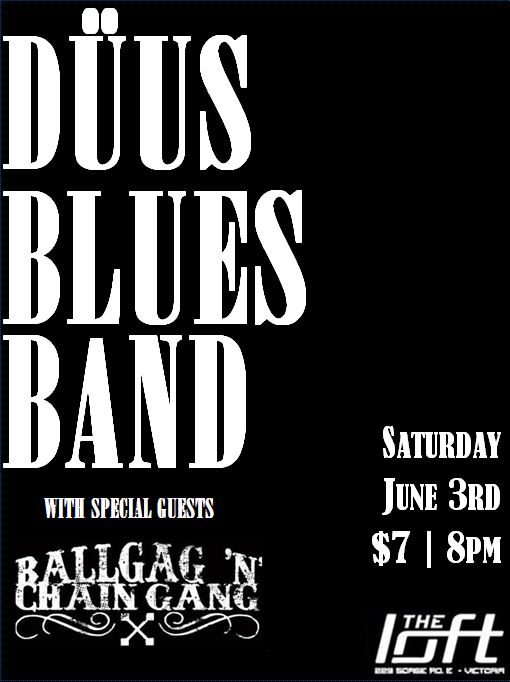The Loft is proud to have back The Duus Blues Band and special guests Ball Gag n Chain Gang on Saturday June 3rd. $7 and doors at 8pm.