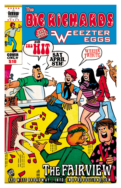 . Saturday, April 8th IMU presents The BIG RICHARDS, WEEZTER EGGS Weezer Tribute & The HIT @ The Fairview, 898 West Broadway . Show 9:30pm / $10 cover