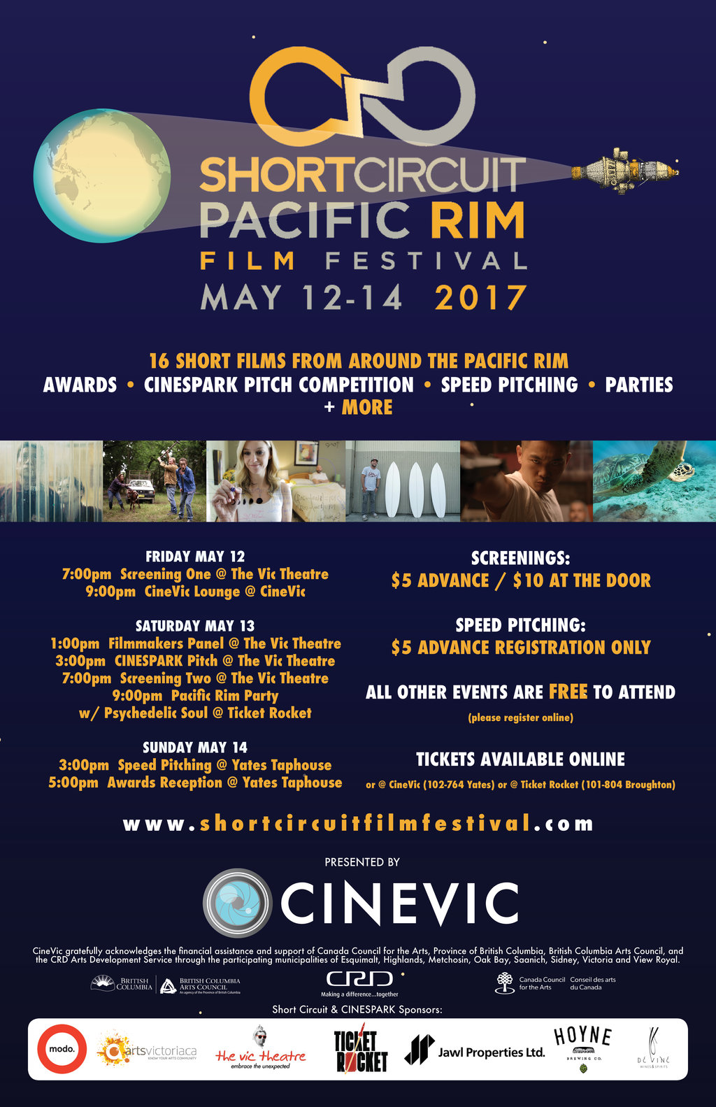 CineVic gratefully acknowledges the financial assistance and support of Canada Council for the Arts, Province of British Columbia, British Columbia Arts Council, and the CRD Arts Development Service through the participating municipalities of Esquimalt, Highlands, Metchosin, Oak Bay, Saanich, Sidney, Victoria and View Royal.