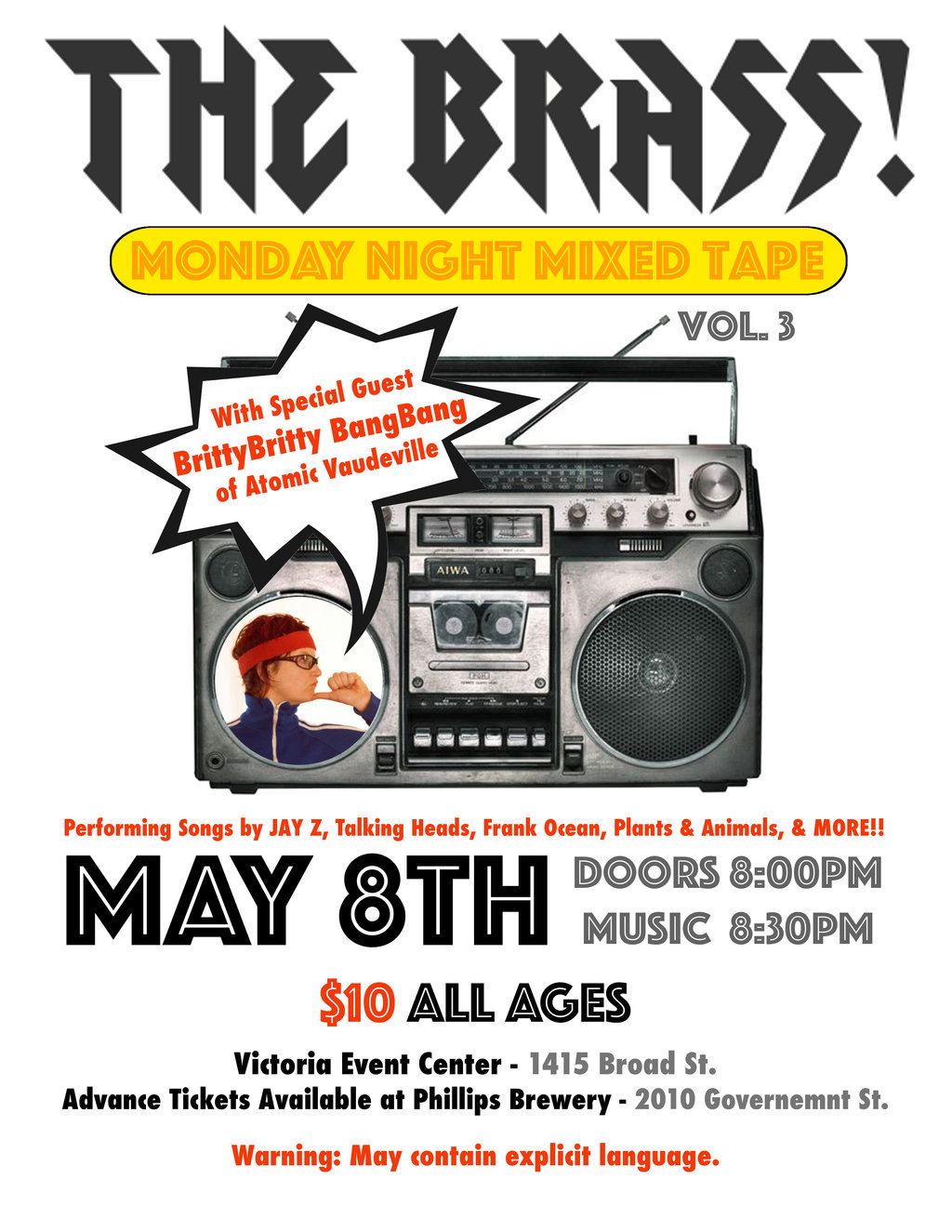 THE BRASS is not your Grandpa's British Brass Band. It is a community brass and woodwind ensemble that plays raucous original arrangements of hip hop, pop, rock, indie, and electronic music! This session's music is laying heavily on the hip hop side of things featuring music by JAY Z, Frank Ocean, The Avalanches, and some other stuff to, like Lou Reed, Plants & Animals, AND MORE!!! Sure to be a fun night! Featuring our Special Guest BrittyBritty BangBang from Atomic Vaudeville!