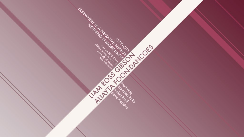 An evening of music documenting the ongoing collaboration between composer Liam Ross Gibson and violinist Aliayta Foon-Dancoes. Contemporary classical music infused with jazz, rock, and electronic elements.