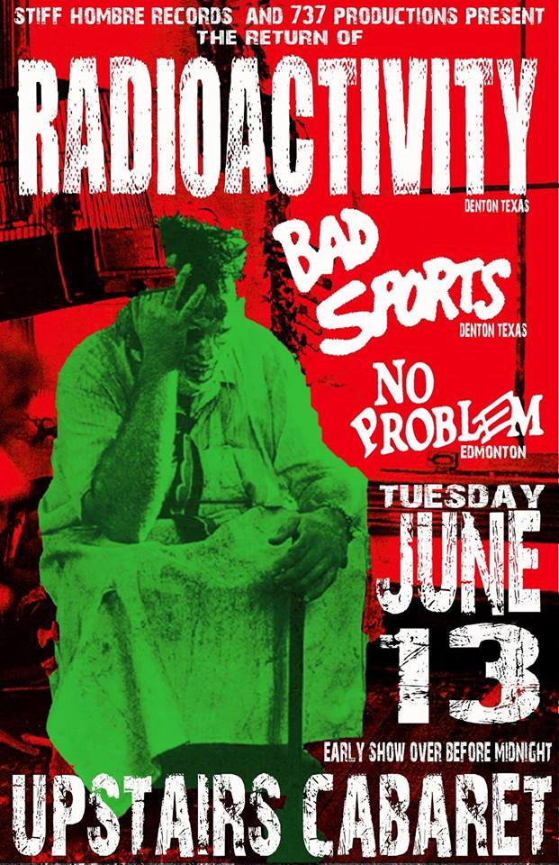 Dirtnap Records band Radioactivity returns to Victoria with fellow Texans Bad Sports and Edmonton's No Problem. Early punk show at the legendary Upstairs Cabaret.