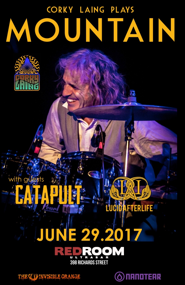 Legendary Rock drummer Corky Laing of MOUNTAIN and WEST, BRUCE & LAING comes back from touring Europe to tour North America with a stop at the Red Room Ultrabar in Vancouver!