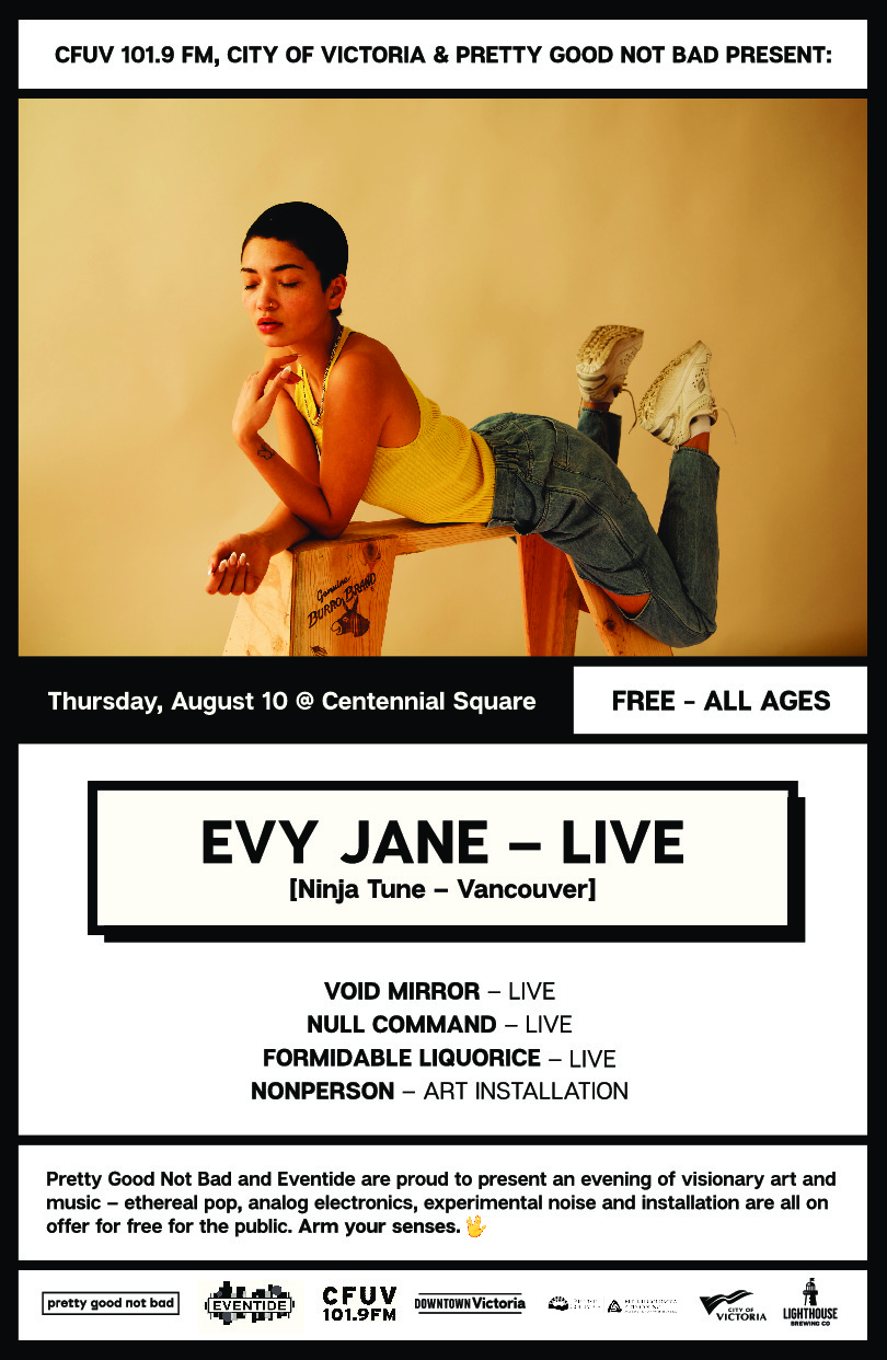Come engage yourself in a dynamic and evocative experience on August 10th in Centennial Square presented to you by Pretty Good Not Bad and Eventide Music Series.