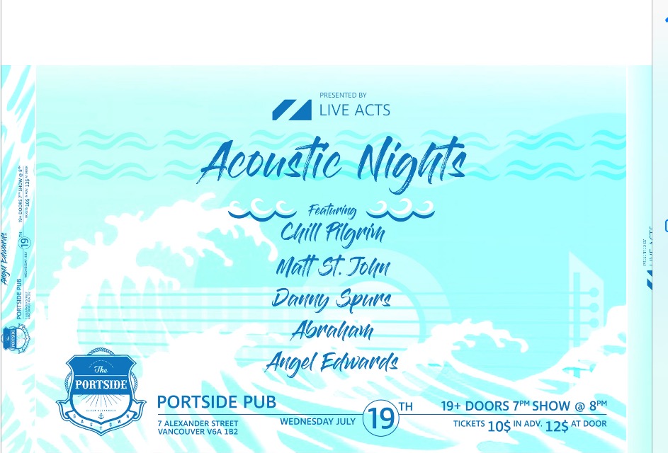 Wed. July 19th 2017 The Portside Pub Vancouver BC $10-$12