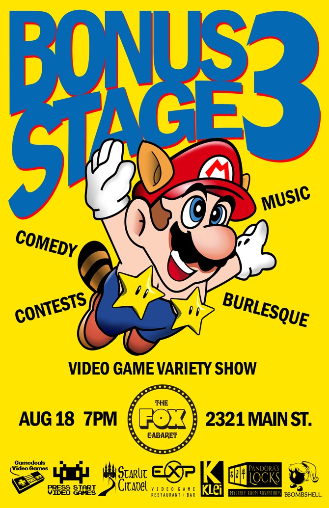 Bonus Stage returns to the Fox Cabaret with more video game comedy, burlesque, music, contests and prizes featuring Geeks vs. Nerds Vancouver, missingNo, The Runaway Four, Rainbow Glitz and Roe Butts.