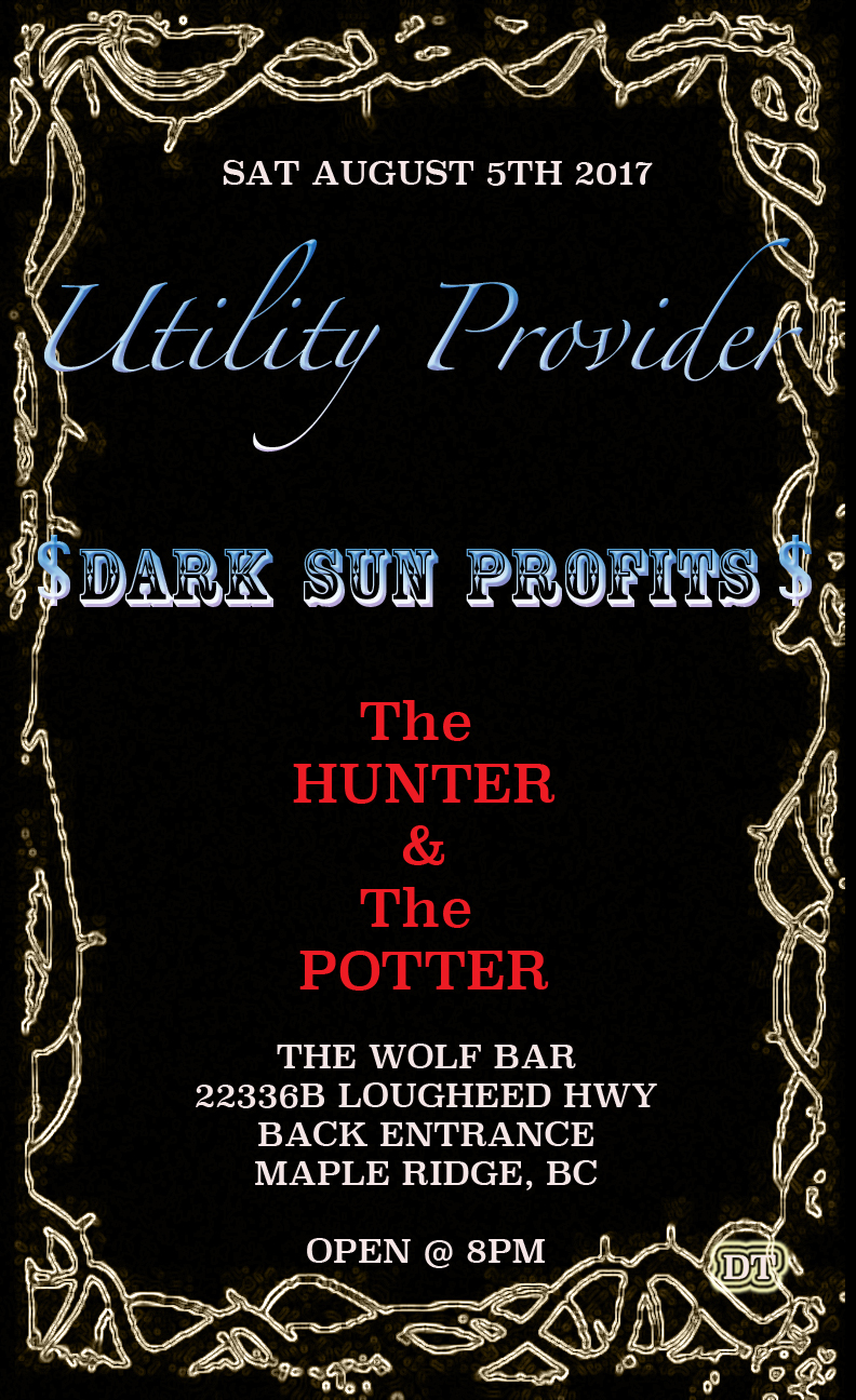 Utility Provider, Dark Sun Profits, The Hunter and the Potter @ The Wolf Bar Aug 5 2017 - Jan 14th @ The Wolf Bar