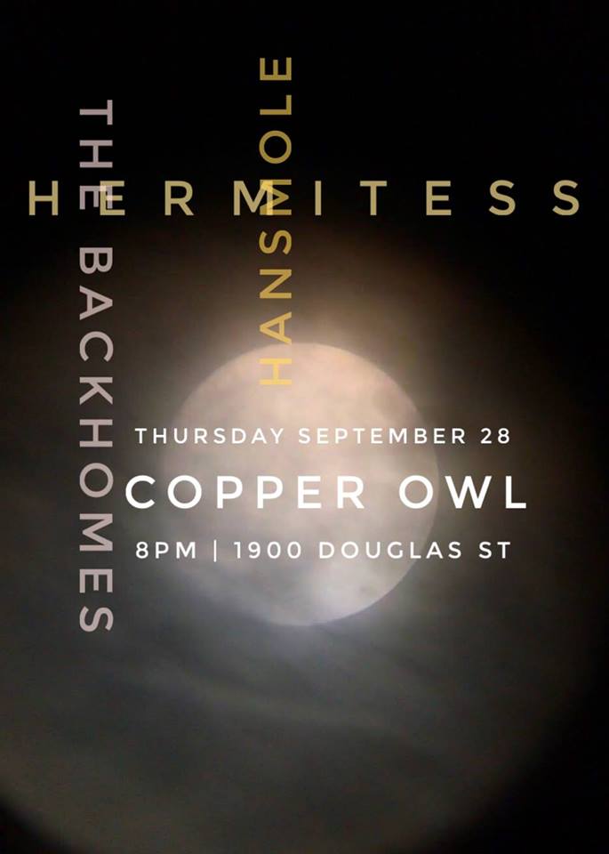 The Hermitess is the solo project of songwriter and harpist Jennifer Crighton, who comes by way of various other musical incarnations, including The Consonant C and Devonian Gardens. Stripping back the performance to a harp and a circle of women's voices, the Hermitess is an inquisitive, contrary, wounded, wise and ever dreaming incantation