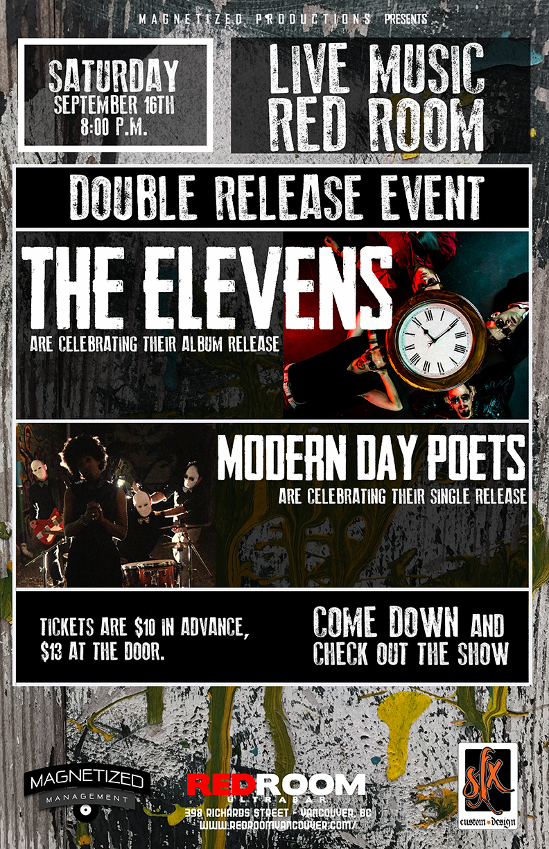 Double CD Release Party: The Elevens , Modern Day Poets @ The Red Room Sep 16 2017 - Feb 18th @ The Red Room