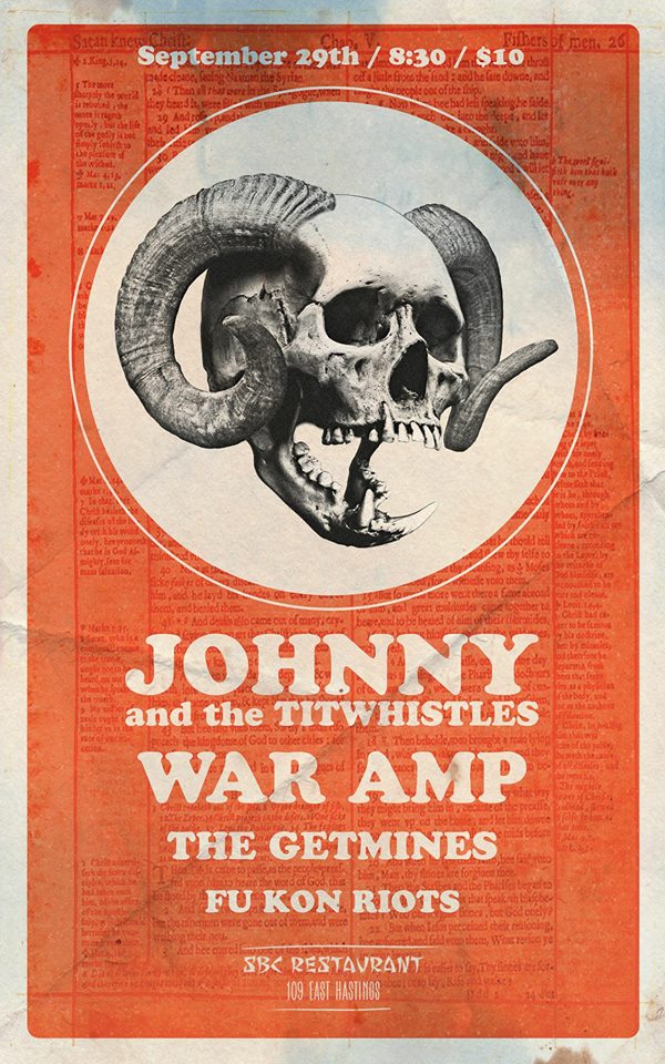Johnny and the Tit Whistles, War Amp , The Getmines, Fu Kon Riots @ SBC Restaurant Sep 29 2017 - Jan 10th @ SBC Restaurant
